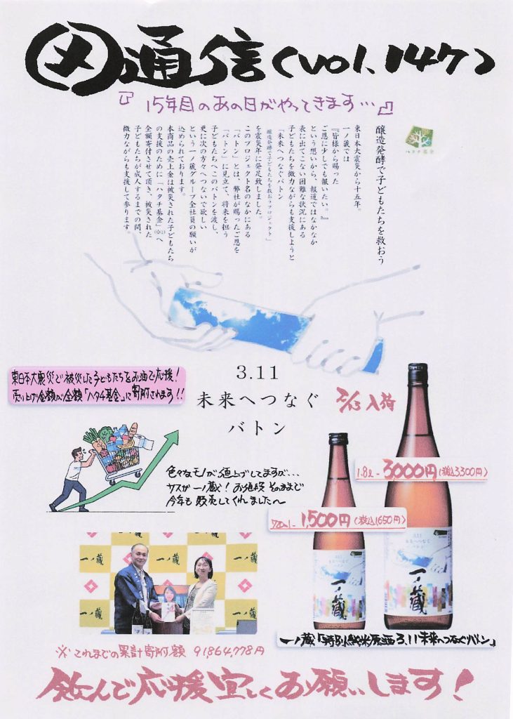 一ノ蔵さんの目に見える支援頭が下がります…